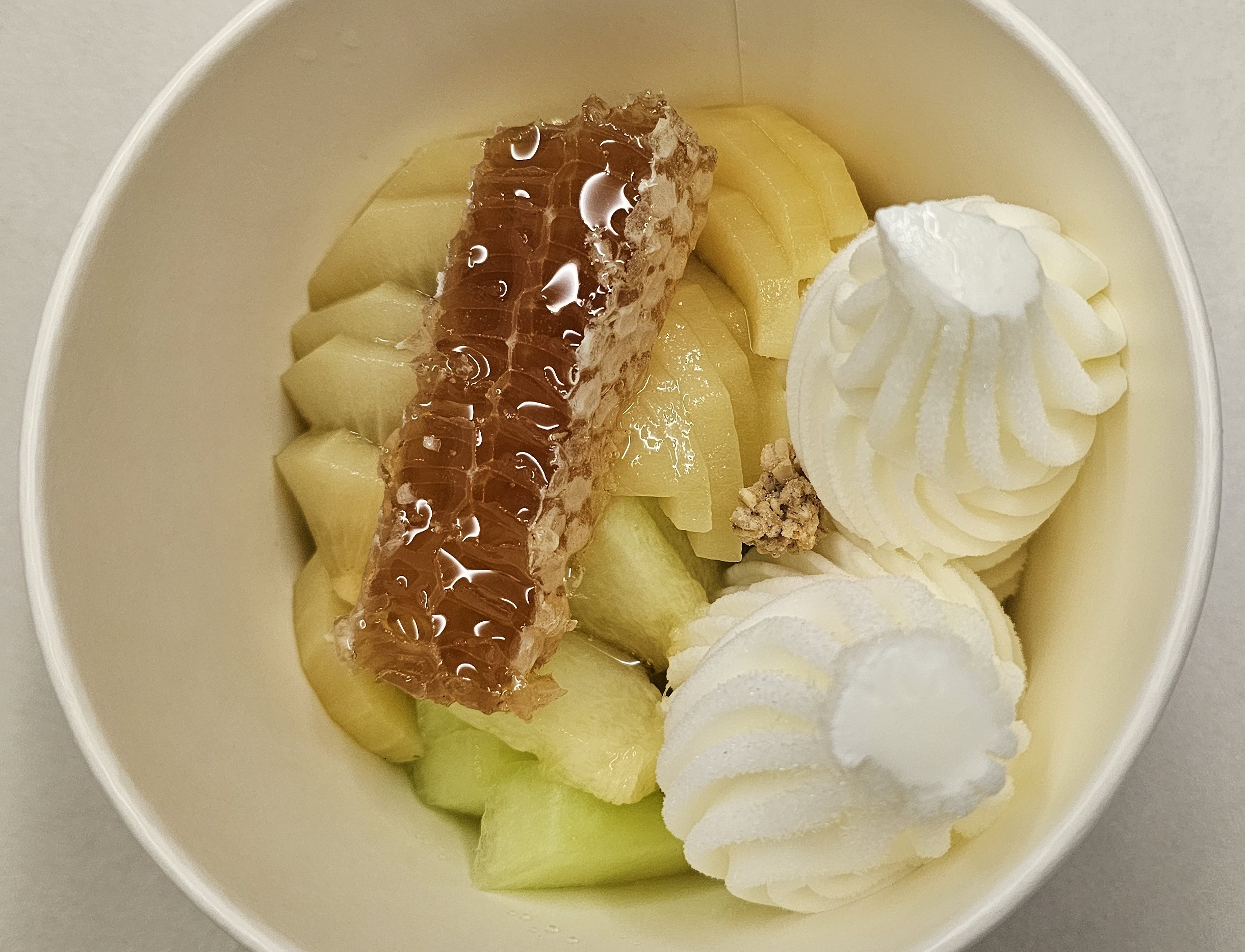 제가 선택한 토핑은 시리얼과 과일이었는데요. 꾸덕한 요거트 아이스크림과 바삭한 시리얼이 어우러지니 씹는 맛이 더해져 좋았습니다. 먹다 보니 '이 정도면 한 끼 식사로도 충분하겠다'는 생각이 들 정도였습니다. 맛 자체는 있었지만, 솔직히 과일의 당도는 조금 아쉬웠습니다. 조금 더 달고 신선했더라면 하는 바람이 남았습니다.
