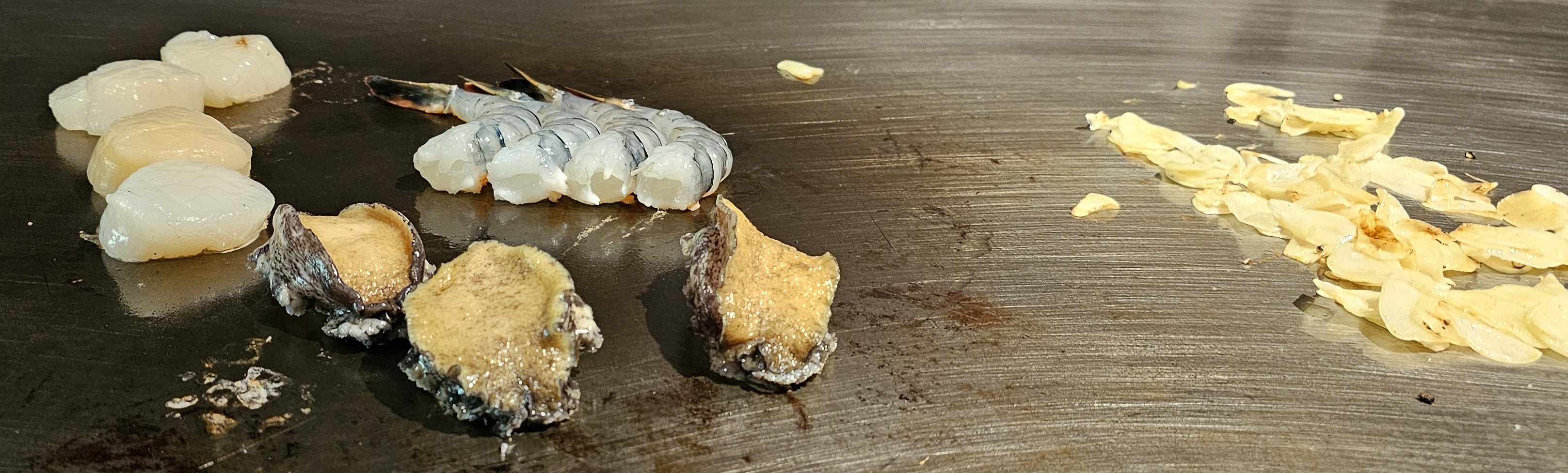 눈으로 신선함을 먼저 확인하니 더욱 기대가 되었습니다. 랍스터 머리는 주방에서 따로 조리해 주시고, 몸통은 저희 눈앞 철판에서 요리해 주신다고 친절하게 설명해 주셨습니다.