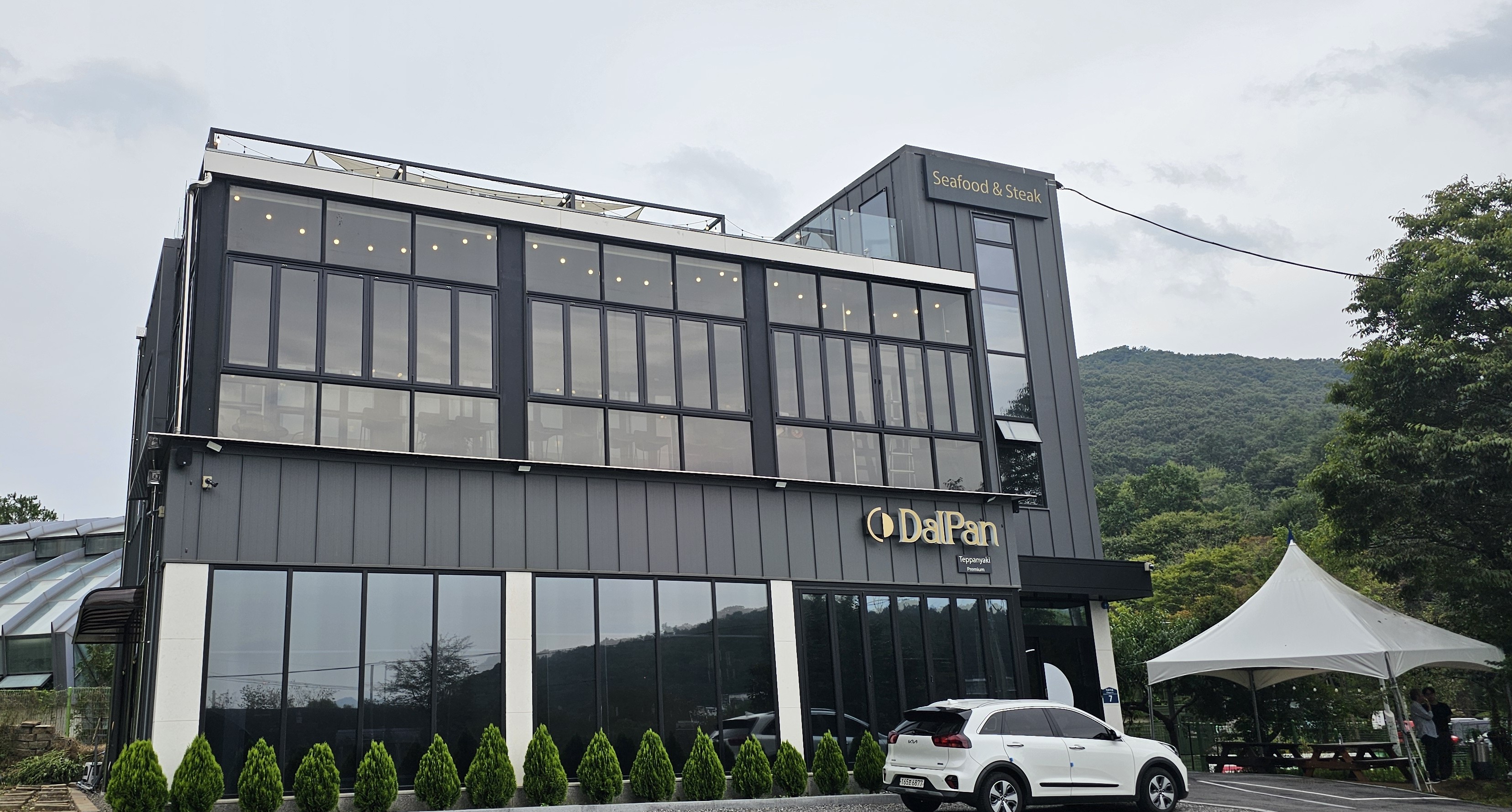 '달판'은 대왕저수지 근처, 신구대학교 식물원 바로 앞에 위치해 있어 내비게이션을 보고 찾아가는 데 큰 어려움은 없었습니다. 다만 저수지 근처라 멋진 호수 뷰를 기대했는데, 아쉽게도 식당에서는 뷰가 보이지 않았습니다.