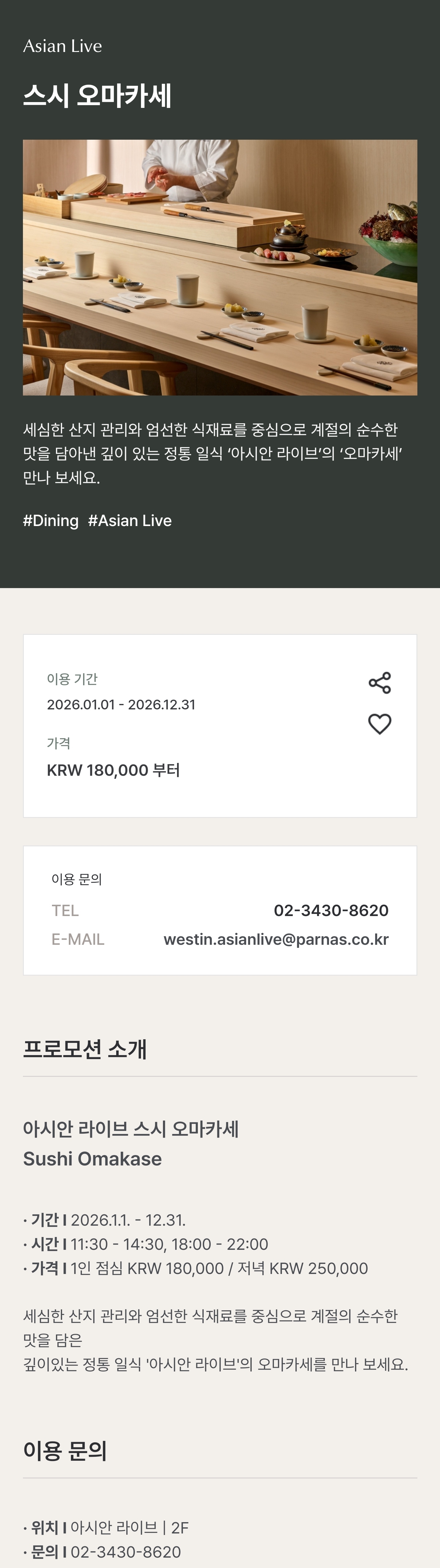 복잡한 예약 전쟁을 치러야 하는 유명 스시야들 사이에서, 이 정도 퀄리티와 쾌적함을 갖춘 곳은 드문 것 같아요. 조용하고 차분하게 수준 높은 스시를 즐기고 싶은 분들께 웨스틴 서울 파르나스의 아시안 라이브를 추천합니다. 저는 조만간 다시 방문할 예정입니다.